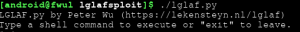 LGLAF.py by Peter Wu Type a shell command to execute or "exit" to leave. #