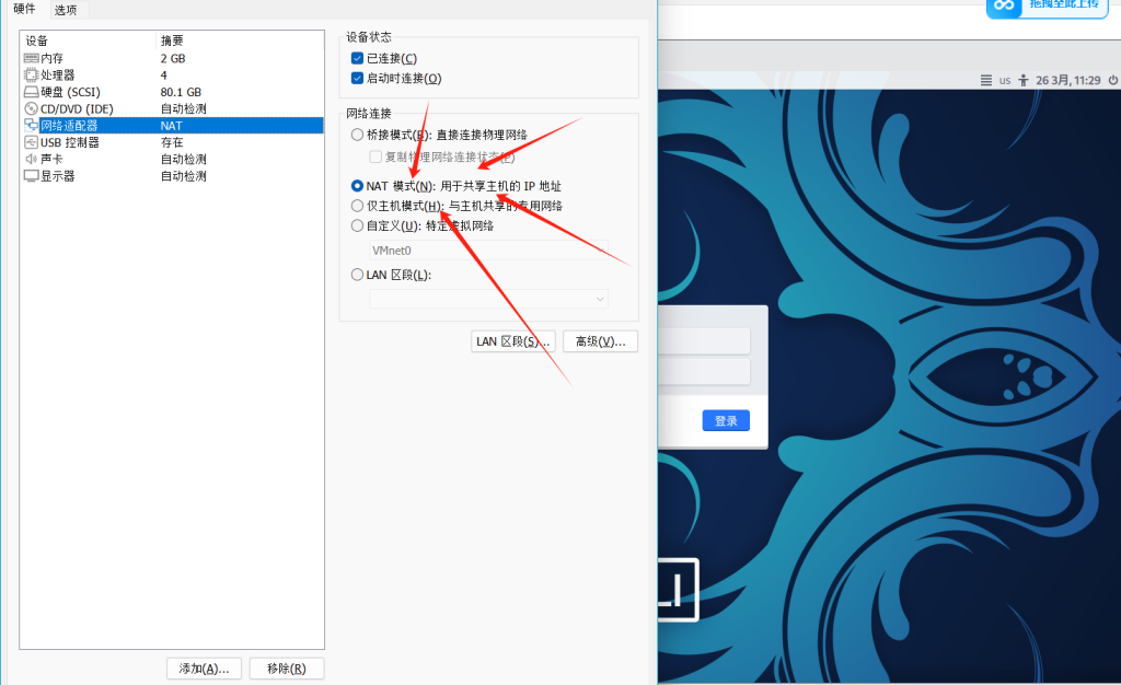 以kali为例将虚拟机网络模式调整为NAT模式