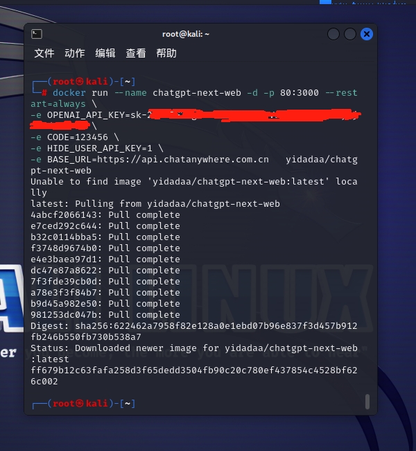 docker run --name chatgpt-next-web -d -p 访问端口:3000 --restart=always \