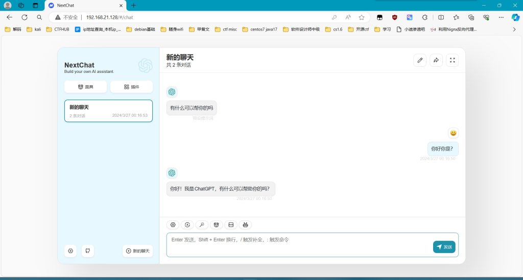 点击确定,开启聊天,测试是否能正常回答。(注:如果出现报错,请检查访问密码,key,中转host地址是否正确如果发现错误请跳转 三.docker常用命令。)